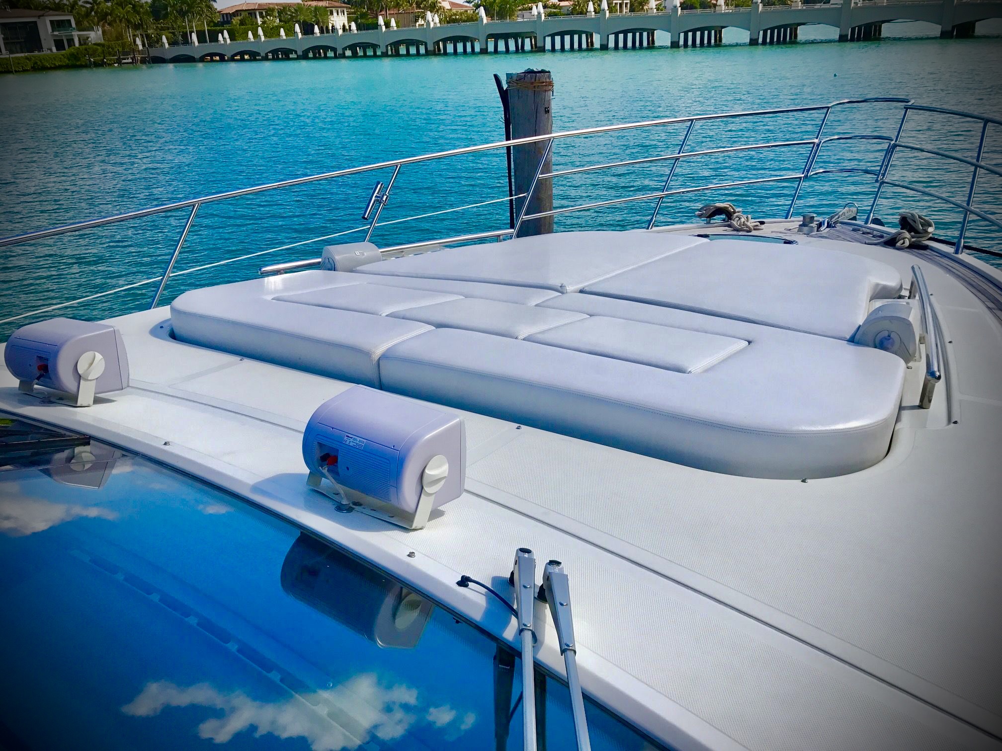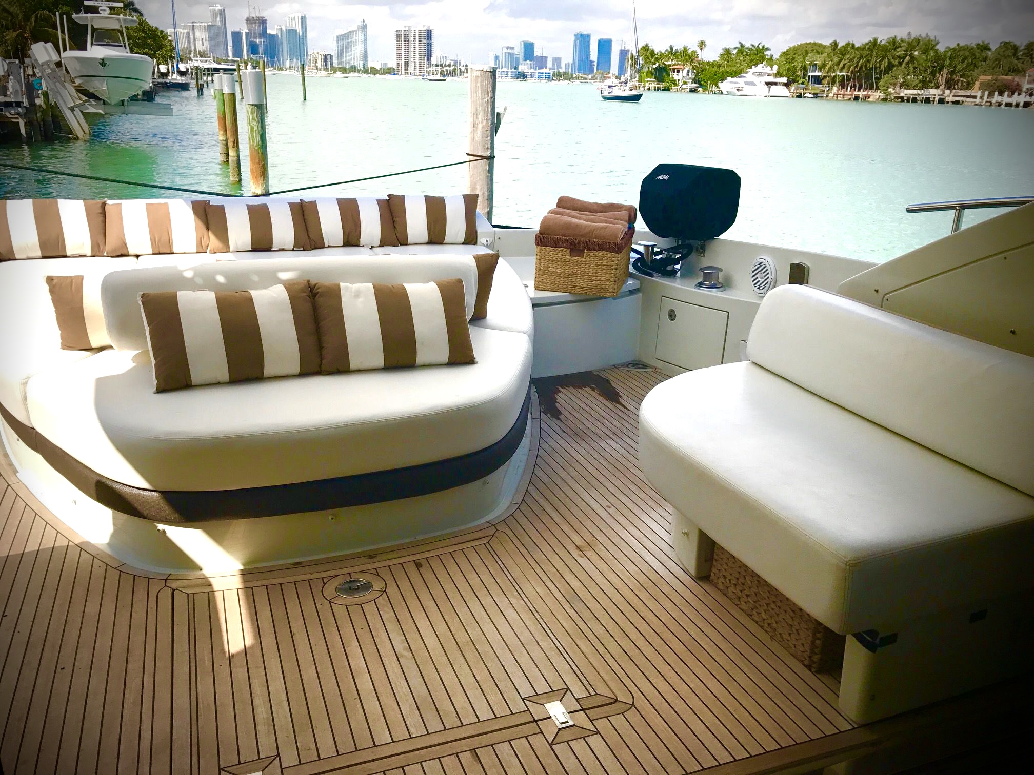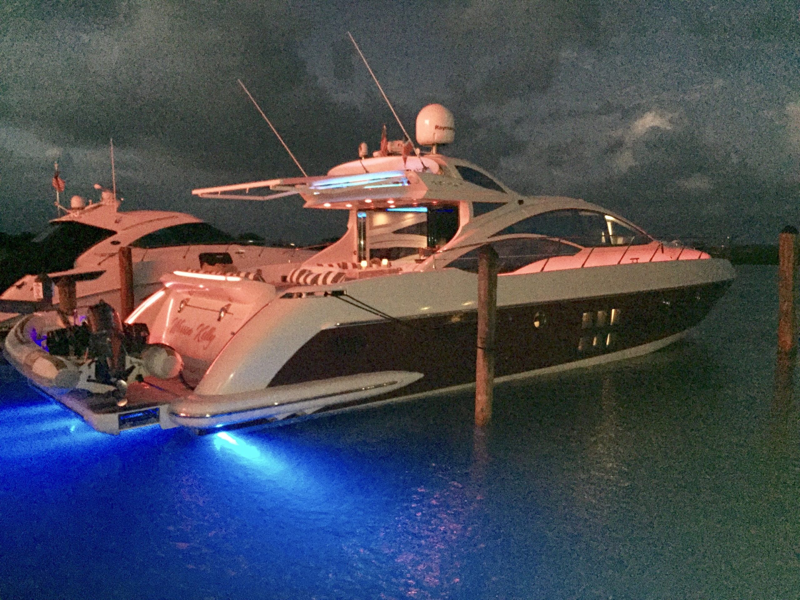 Charters are available for Half Day (4 Hours), Full Day (8 hours) or Term Charters (Multi-Day). You’ll have a captain and stewardess catering to your every whim. Water, Soda, Ice and Fuel for local Miami cruising are included. All charters begin at Miami Beach Marina, Sea Isles Marina or Fontainebleau Marina. We’ll work with you to create the perfect itinerary based on your needs. Cruising hot spots include: Star Island, Palm Island and Hibiscus Island were you can have a sneak peek of celebrity homes and top Miami Beach Real Estate. Then cruise down to Nixon’s Sandbar in Key Biscayne, where you can anchor and swim. As evening approaches and it’s time to head back; we finish your charter cruising by downtown Miami and watching the sunset over our beautiful skyline as the city lights come alive.