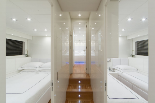 This magnificent max-open, Italian yacht exterior has been styled by Andrea Bacigalupo while her interior has been designed by Rodriguez Interiors. Gorgeous in every way, her interior layout sleeps 9 guests comfortably in 4 staterooms, including a master stateroom, 2 double cabins and 1 twin cabin. She’s also equipped to carry up to 4 crew on board to ensure a relaxed luxury experience. Learn more about this boat rental below or check out our other Term Charters.